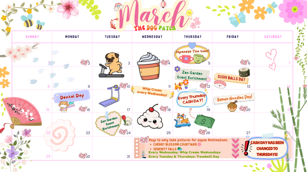 Look for the camera emoji on our calendar! These are the only days we will be taking destination photos for their passports: (3/2, 3/4, 3/6, 3/10, 3/12, 3/16, 3/18, 3/20, 3/24, 3/26, 3/30).